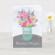 När en religiös syster, nunna, mår dåligt, kommer denna vackra bukett blommor att muntra upp henne. Vattenfärgblommor i ljust rosa, lila och gyllengul är glada i en murarvas på ett bord. Låt henne veta att du ber för att hon ska bli frisk och må bättre snart!