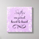 Sisters citerar Kanvastryck från hjärta till hjärta. Lila bakgrund med både kant-accenter och vintage dubbla-hjärtan rulla ram detta inspirerande sister-citat: "Sisters gås med hjärta till hjärta".