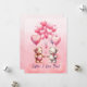 Två björnar som står på en rosa moln och håller i en enorm bukett av rosa hjärtballonger.