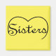 Uppdaterad design med högst upp på ett hjärta och ord SISTERS arbetade i den - i svart skript på en solid färgad eller oformaterad bakgrund. Det finns gott om utrymme för personlig anpassning. Du kan ändra färg i bakgrunden till din favorit!