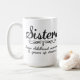 Systrar delar muggen för barndomminnes… kaffe läser "systrar delar barndomminnen och fullvuxna övre drömmar.",