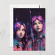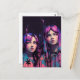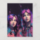 AI-genererad konst av två systrar med lila hår en målning med färgsprut