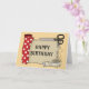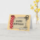 Önska någon som älskar att sy en lycklig födelsedag med detta fantasifulla födelsedags kort. En rulle röd och vit prickig tyg finns till vänster om designen. Överst ett par saxar och ett måttband längst ner. En nål och tråd är fäst på höger sida. I mitten står orden happy birthday som kan ändras med hjälp av den medföljande mallen. Det medföljer också en mall som du kan använda som den är eller ändra till ditt eget budskap.