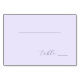 This table number features a minimalist design with a soft lavender background, creating an elegant and calming atmosphere. The layout is clean and simple, with a horizontal line at the top and cursive typography for "table" followed by a customizable space for the number. The use of delicate lines and subtle color enhances its sophisticated style, making it perfect for weddings, formal events, or chic gatherings. Its understated charm adds a touch of refinement to any event setting.