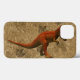 Den brinnande T-Rex, med förstenad dinosauris fotavtryck i sten.