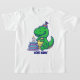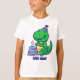 En söt liten T-Rex-dinosaurie ler och bär en födelsedagshatt när den passar in med sin andra födelsedagskalas. En bra gåva till er två år gamla!