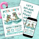 Vi presenterar vår T-Rex Dinosaur Bassäng Födelsedagsfest inbjudan! Redo för omedelbar nedladdning och utskrift. Gå in i Jurassic-världen med vår unika utformning som har två T-Rex på sommaren bassäng flyter att njuta av drycker utrustade med party-hattar, ballonger och uppfriskande drycker. Denna inbjudan blandar perfekt bassäng party roligt med ett dinotema, skapar den perfekt för barns födelsedagsfester, tonåringar utomhus firande, Jurassic-temaarrangemang och sommarmöten för dinosaurieentusiaster. Utöver den visuella charmen erbjuder den här inbjudan sömlös anpassning som möjliggör personlig, typsnitt, storlekar och färg.
