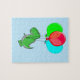 T-rex-cute som flyger med ballonger i Blå himmel Pussel