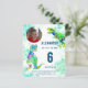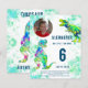 T-Rex dinosaur 6-års födelsedagsfest budget inbjudan för barnet som fyller 6 och älskar dinosaurier. Dessa färgglada brölande T-Rex inbjuder Dino-fans till en rolig 6-års födelsedagsfest. Teal akvarellstänk bakgrund med Tyrannosaurus rex i levande blågrön och teal Personifiera denna mångfärgade psykedeliska Tyrannosaurus rex-design med ett foto, födelsenumret och festsedlarna och du är redo för en dinosaurie-tema dino-födelsedag fullpackad med kul. Alla dinosauriearter är välkomna. Originalillustration Illustration av Catherine Sweetman