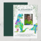 Alla dinosauriearter är välkomna att fira din lilla T Rex som fyller 8 med denna roliga färgrika akvarell dschungel dinosaurie födelsedagsinbjudan. Lägg till ett foto av ditt vilda barn som snart ska fylla åtta år och alla dina födelsedagsdetaljer för att skapa en rytande T Rex och söt Stegosaurus personlig Jurassic dschungel 8-års inbjudan med grön lövverk. Förhistoriska Jurassic-era Dinosaurieillustrationer, originalkonst av konstnären Catherine Sweetman