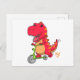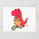 T-rex Dinosaur Riding A Grönt Scooter Vykort
