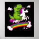 T-Rex Dinosaur Riding Magic Unicorn Rainbow Poster