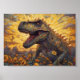 T-rex i ett solrosfält poster