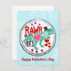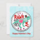 Glad Alla hjärtans dagskort med en bild av en grönt t-rex med svart top hat med hjärta och blommor överallt. Det står att Rawr elak I kärlek i t-rex. Baksidan har ett Alla hjärtans meddelande som du kan anpassa (eller ta bort om du inte vill ha ett meddelande).