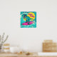 T-Rex med solglasögon och ridande av neon rosa Poster