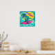 T-Rex med solglasögon och ridandes på en neonrosa Poster