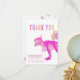 Redo att anpassas av dig, dessa söta dinosaurie-tack-kort med T-Rex är ett roligt sätt att uttrycka din tacksamhet när födelsedagsfesten är över. De rosa färgerna i varmt rosa, blekt rosa, orange och lila utformades för att vara lämpliga för de tjejigaste av tjejer och din anpassade tack-text ger det där lilla extra. Dessa personliga dinosaurie-födelsedagskort vänds för att avslöja ett spår av rosa dinosauriefotspår.