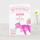 Detta färgstarka dinosauriekort från Grattis på födelsedagen är redo att vara personlig för ditt barn, ditt barnbarn eller barnbarn etc. På framsidan följs GRATTIS PÅ FÖDELSEDAGEN i en färglös båge med färgat brev av ett utrymme för att lägga till barnets namn i shock rosa och deras dinosauriålder (ONEASAURUS, TWO-REX, TRE-REX, DINO FOUR, FEM ASAURUS osv.) i rosa. Den huvudsakliga utformningen av inslag är T-Rex i en party-hatt med ballonger och till den lämnat om honom är färgstark stavning av GRATTIS PÅ FÖDELSEDAGEN - lägg till barnets födelsedag (1:a, 2:a, 3:e osv.) i lila och under detta, deras namn igen i shock rosa. Inuti finns utrymme för personlig Grattis på födelsedagen-meddelandet. Den här anpassningsbarna är ett dinosauriefödelsekort sött för att dinosaurigalna flickor med ett designat tema för shock rosa, rosa, orange och lila färg ska bli lysande giriga.