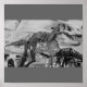 Svart och vit version av ett foto som jag tog av ett T- Rex skelett