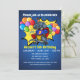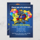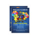 T-Rex superhjälte med en födelsedagshatt omgiven av en färglös spricka av konetti. Coola 5: a födelsedagspresent för din femåring. Anpassa och lägg till information om namn och party.