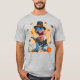 T-Rex dinosaurie, klädd som pilgrim för Thanksgiving med höst löv och pumpor.