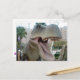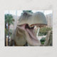 Ett vykort med en rytande t-rex dinosaurie. Fotografi av © KatiesKreations.