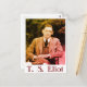 1934 fotografi av T. S. Eliot. Thomas Stearns Eliot OM (26 september 1888-4 januari 1965) var en poet, essayist och lekrätt. Han var en ledande figur i den engelskspråkiga modernistiska poesi där han gav ny fart åt konsten genom sin språkliga använda, skrev stil och versa struktur. Han är också känd för sina kritiska uttalanden, som ofta omvärderar det sedan länge hållna kulturella tro. Han är född i St. Louis, Missouri, i en framstående Boston Brahmin-familj, flyttat till England 1914 vid 25 års ålder och fortsatte att bosätta sig, arbeta och gifta sig där. Han blev brittisk subjekt 1927 vid 39 års ålder och avstod från sitt amerikanska medborgarskap. Eliot uppmärksammade för första gången sin dikt "The Kärlek Sång of J. Alfred Prufrock" från 1914 till 1915, som vid tidpunkten för dess offentliggörande ansågs vara främmande[5]. Den följdes av The Slösa Land (1922), "The Hollow Manar" (1925), "Ash Onsdag" (1930) och Fyra kvartsparter (1943). Han skrev sju pjäser, i synnerhet mordet i katedralen 1935 och Cocktail Party (1949).