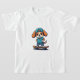 A vibrant cartoon illustration of a cool puppy striking a confident pose on a skateboard. The stylish dog is decked out in urban streetwear, sporting a backward teal baseball cap, a matching zip-up jacket, and denim shorts, ready to ride with a friendly smile.