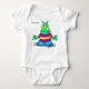 Den här bilden har ett vitt plagg av baby som är utskrivet med en tecknad grönt utlänning av kor i en avslappnad attityd, med en stripe-skjorta, blå jeans och sensorer - tunga är lekande. Texten "din text" ovan antyder att detta är en anpassade. Den snabba, återhållsamma karaktären gör det till en roligt och ett fantasifullt val för personlig baby bära - perfekt för sci-fi fläkt eller som en viskfull gåva till små utomjordingar.