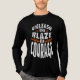 The design features massive, distressed white block typography with a rugged, weathered texture that symbolizes resilience and raw power. The layout is dynamic, with "UNLEASH" and "BLAZE" arching across the top, while "COURAGE" anchors the bottom in a heavy, vertical-stretch font.