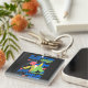 The design features a stylized, happy couple in a modern flat illustration style, dressed in bright pink, blue, and green with playful patterns like yellow floral trousers. The composition is bursting with whimsical abstract elements, including green scribbles, red stars, and bubbly cloud shapes. The bold blue typography is split across the top and bottom, creating a balanced and high-energy visual.