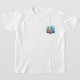 A charming cartoon illustration of a joyous brown and white puppy floating safely inside a classic red and white lifebuoy. The adorable dog beams with a friendly smile, set against a backdrop of stylized blue ocean waves that evoke a fun summer atmosphere.