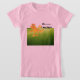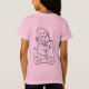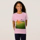 En tiger för tecknad av fullt, orange och gult med svart rand, som viftar med högerna tass, mot en grasslig bakgrund av grönten. Tigern har en öppen mun, vita whisky och ett vänligt uttryck.