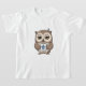 This design features a humorous and relatable cartoon of an visibly exhausted brown owl. The bird has heavy, drooping eyelids and a weary expression, with a black "Z" floating above its head to emphasize its sleepiness. It is standing and clutching a white ceramic mug tightly with both wings. The mug displays the text "NIGHT SHIFT FUEL" in bold blue letters, accompanied by a small icon of a steaming cup of coffee, set against a clean, light gray background.