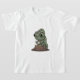 This charming artwork depicts a studious and adorable chameleon sitting comfortably on a cut wooden tree stump. The character is designed with intricate, mosaic-like green scales and features large, expressive black eyes that convey deep focus. Clasping a small pencil and an open field guide labeled "EXPLORERS" with visible map details, this little adventurer seems engrossed in study. The illustration highlights the reptile's signature curled tail and unique head ridges, blending nature themes with a whimsical, scholarly personality.