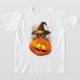Lustigt och Cute Black Kattunge med Witch Hat som biter sin groggy... bedrog Halloween Pumpkin Friend. Original Vector Illustration Copyright BluedarkArt ChameleonArt.