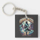 The central figure is a lone cowboy, cloaked and wearing a wide-brimmed hat, gripping a pistol. He is shrouded in dramatic turquoise and teal smoke/mist that swirls intensely around him, set against a dark, rocky desert canyon background with purple and orange highlights. The design is heavily stylized with a clean, dark, and highly detailed aesthetic. This piece is perfect for fans of supernatural Westerns, Red Dead Redemption, dark fantasy, horror movies, and gothic street apparel.