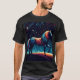 En slående T-shirt-design med en majestätisk häst i rörelse, dess mane flyter på ett skonsamt sätt i vinden. Bilderna fångar hästens kraft och elegans, mot en dynamisk bakgrund av pulserande färg eller subtila ärtliga toner. Perfekt för ridentusiaster, älskare eller någon som drar sig till den anda av frihet och styrka som en häst representerar.