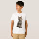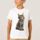 A charming digital illustration of a fluffy Maine Coon kitten with expressive amber eyes, looking upward with a curious and gentle gaze. The kitten features characteristic tufted ears and beautifully detailed tabby fur in shades of brown and charcoal. It is wearing a cozy, hand-knitted grey woolen sweater with a textured cable stitch and a small brown button detail at the neck. The artwork is presented in a clean, high-detail style against a solid light grey background, highlighting the soft fur textures and the warm, whimsical atmosphere of the portrait.