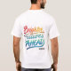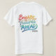 T-shirt-designen visar frasen "Brighter Futures Ahead" i ett fet, modernt teckensnitt. Texten återges i en sjudande palett med flera färg, som innehåller gult, orange, rosa och blått. Den övergripande utformningen förmedlar en känsla av optimism och hopp, vilket tyder på en positiv och lovande framtid. Färg och typografi skapar en synligt slående och energisk effekt, skapar t-shirt en snyggt och lyfter upp påstående biet.