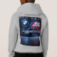 Dieser weiße Hoodie vereint sportliche Eleganz mit urbanem Streetwear-Flair. Auf der Rückseite befindet sich ein detailreiches Motiv eines BMW M4 im Rennumfeld, ergänzt durch das klassische BMW- und M-Logo. Die Szene zeigt den Wagen auf der Strecke, eingefangen mit dynamischer Beleuchtung und einer kraftvollen Komposition – ideal für alle, die Performance und Stil leben.