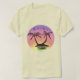 Svart siluett av två palmer på liten ö. Solen går ner bakom ön. Himmelen i lila och röda nyanser med den nedgående solens gula färg reflekterad i vattnet. Böjd text ovanför lyder "Relax" - kan ändras. Originalkonst av Deanna Pendrick.