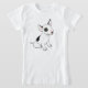 Behålla den här dockan med dig vart du än går. Friendly white bull-skräckers valp med svarta markeringar och ett brunsvart öga-plåster.