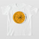 Ett halvt århundrade inspirerade till design med en återpekande med ett stiliserat segment av orange på vit bakgrund. Ett anpassade som du kan anpassa med egen text, bilder och egna idéer. En originalbild för digital konst skapat av Jess Perry på QuirkyChic Retro.