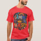 Här följer några beskrivningar av t-shirt-designen: * Alternativ 1: En pulserande och öga-infångande design med texten "Gaming Majesty" i ett fet, färg-teckensnitt. Färg är ljust och lekfullt, vilket återspeglar upphetsningen och roligten av spel. * Alternativ 2: En återinspirerad design med texten "Gaming Majesty" i ett pixelbundet teckensnitt som påminner om klassiska videospel. Den färgstarka 8-bitars bakgrunden ökar den nostalgiska känslan. * Alternativ 3: En djärv och geometrisk design med texten "Gaming Majesty" i ett vasst, vinkelrätt teckensnitt. Det kontrasterande färg skapar en påfallande visuell påverkan.