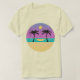 Den här T-shirt-grafiken visar en fantastisk hawaiisk solnedgång: sol sätter sig under en färglös himlar, handflatan träd och skonsam vinkar kysser sandstranden. Det är en bild av paradiset på skjortan.