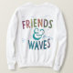 Den här t-shirt-designen fångar vänskapens och kärlek för havet. Texten "Vänner & Vågar" visas i ett roligt med flera färger, där "&"-symbolen på ett smart sätt omvandlas till en våg eller innehåller en liten vågig illustration. Det pulserande färg framkallar en känsla av sommartid och en ändlös äventyr som delas med vänner.