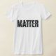 Kvinnors t-shirt med modernt budskap om social rättvisa Black Lives Matter med "Matter" i feta svarta bokstäver och "black lives" i vitt skript överlägg