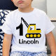T-shirt för pojke 1-årsdag med byggkran och nummer 1. Personalisera genom att lägga till ditt barns namn!