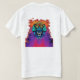 En slående digital grafik med en häftig Oni-mask med ett intensivt uttryck, glödande blått skal och vassa fanger. Masken är försedd med ett guldliknande krona-ornament och ställs mot ett pulserande stänk av orange, lila och svart, skapande ett djärvt och kaotiskt estetiskt. Konstruktionen sammanfogar traditionell japansk folklore med ett modernt neon-cyberpunk stil.